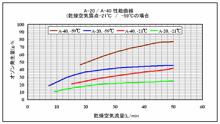 オゾン発生出力と空気流量が調節可能の為、オゾン濃度及び生成量が調整出来ます。