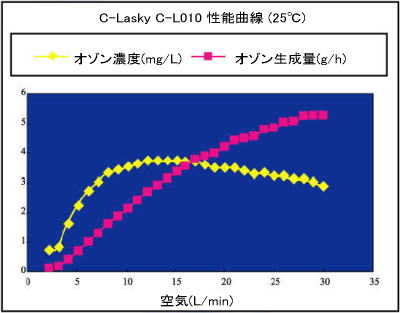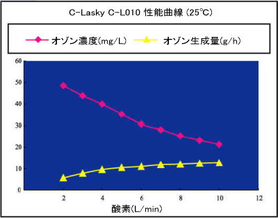 DTI及びDSIは外部より酸素供給型で、オゾン発生量は酸素量6L/min時10g/hrになります。 |